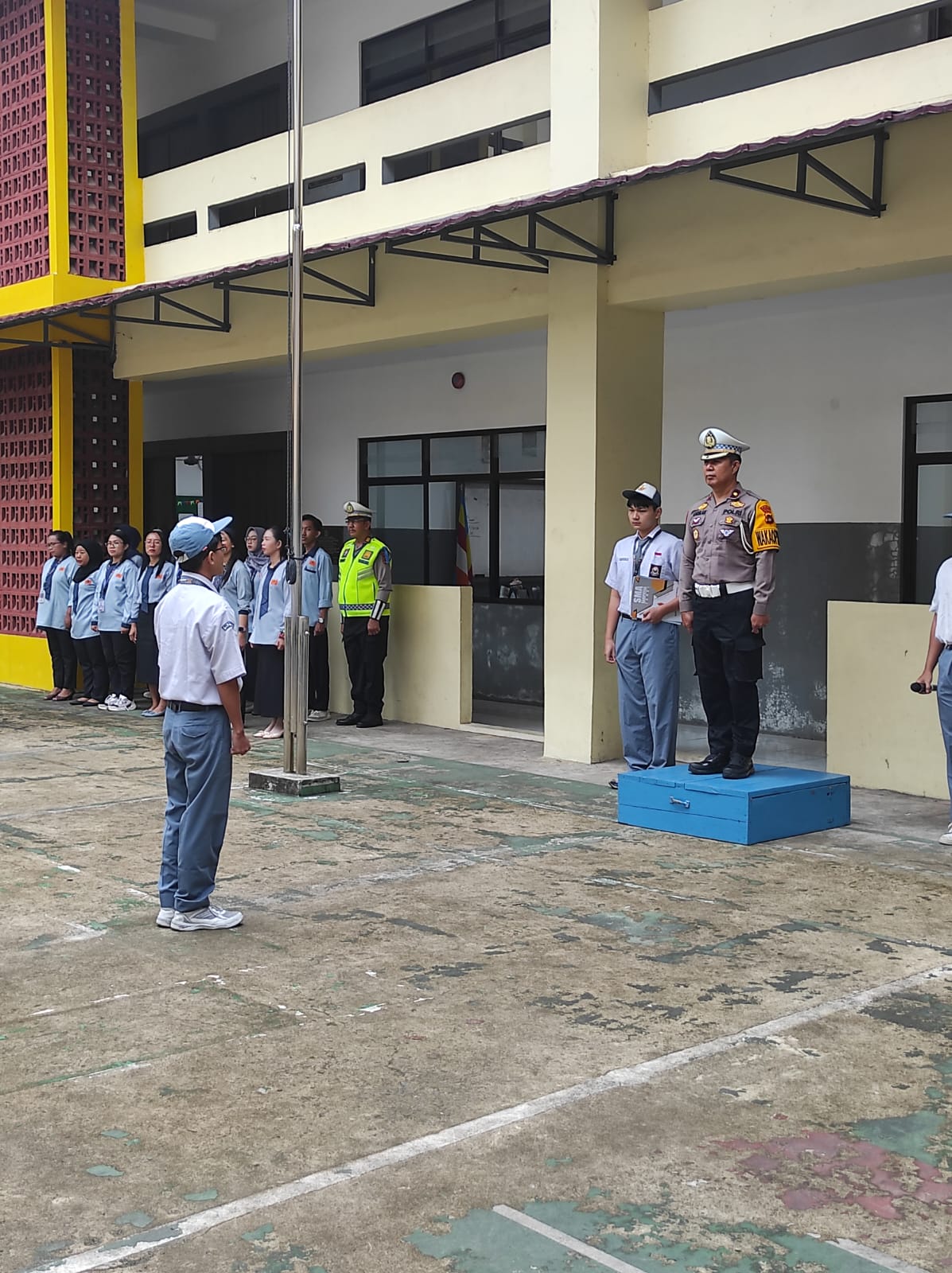 Setelah prosesi upacara bendera yang berlangsung khidmat, kegiatan dilanjutkan dengan sesi sosialisasi Safety Riding dan memberikan pemahaman mendalam mengenai etika berlalu lintas yang benar.
