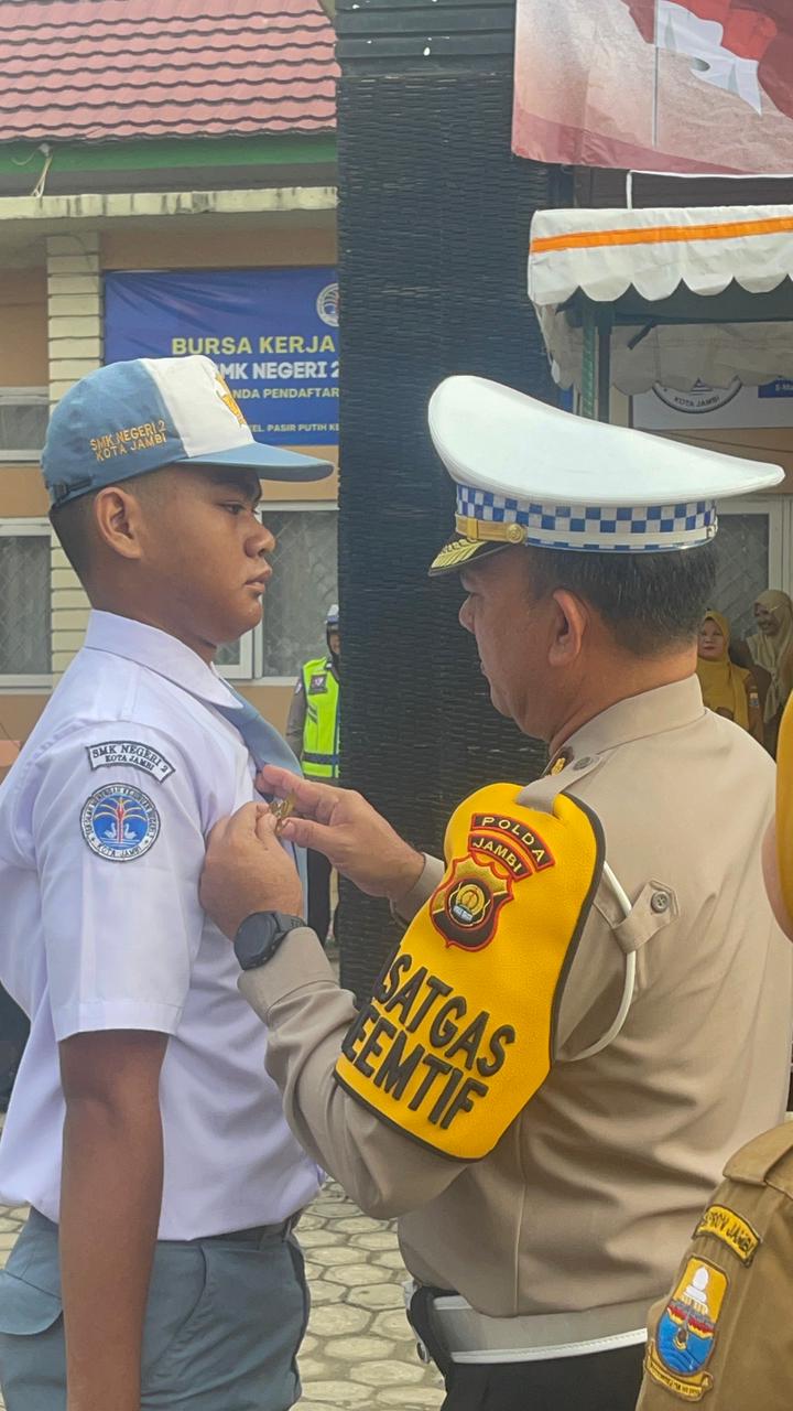 Selanjutnya dilaksanakan juga Edukasi Milenial oleh PJR di SMAN 2 Kota Jambi. Kasat PJR, AKBP Poeloeng Arsa Sidanu, hadir langsung sebagai Pembina Upacara.