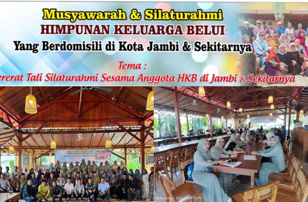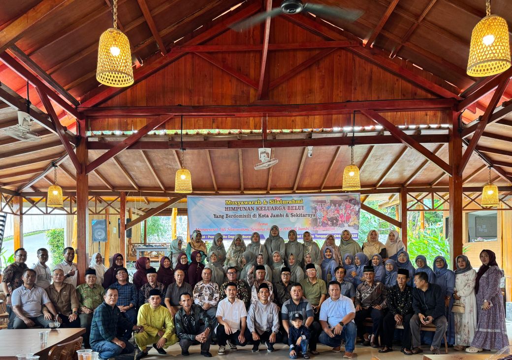 Jambi —jambiaktual.co.id Himpunan Keluarga Belui Jambi (HKBJ) menggelar Musyawarah dan Silaturahmi Warga Desa Belui yang berdomisili di Kota Jambi dan sekitarnya. Kegiatan tersebut berlangsung hangat dan penuh kekeluargaan di Restoran Pondok Kito Jambi, dengan dihadiri oleh puluhan warga asal Desa Belui, Kabupaten Kerinci, yang kini menetap di wilayah Jambi.
