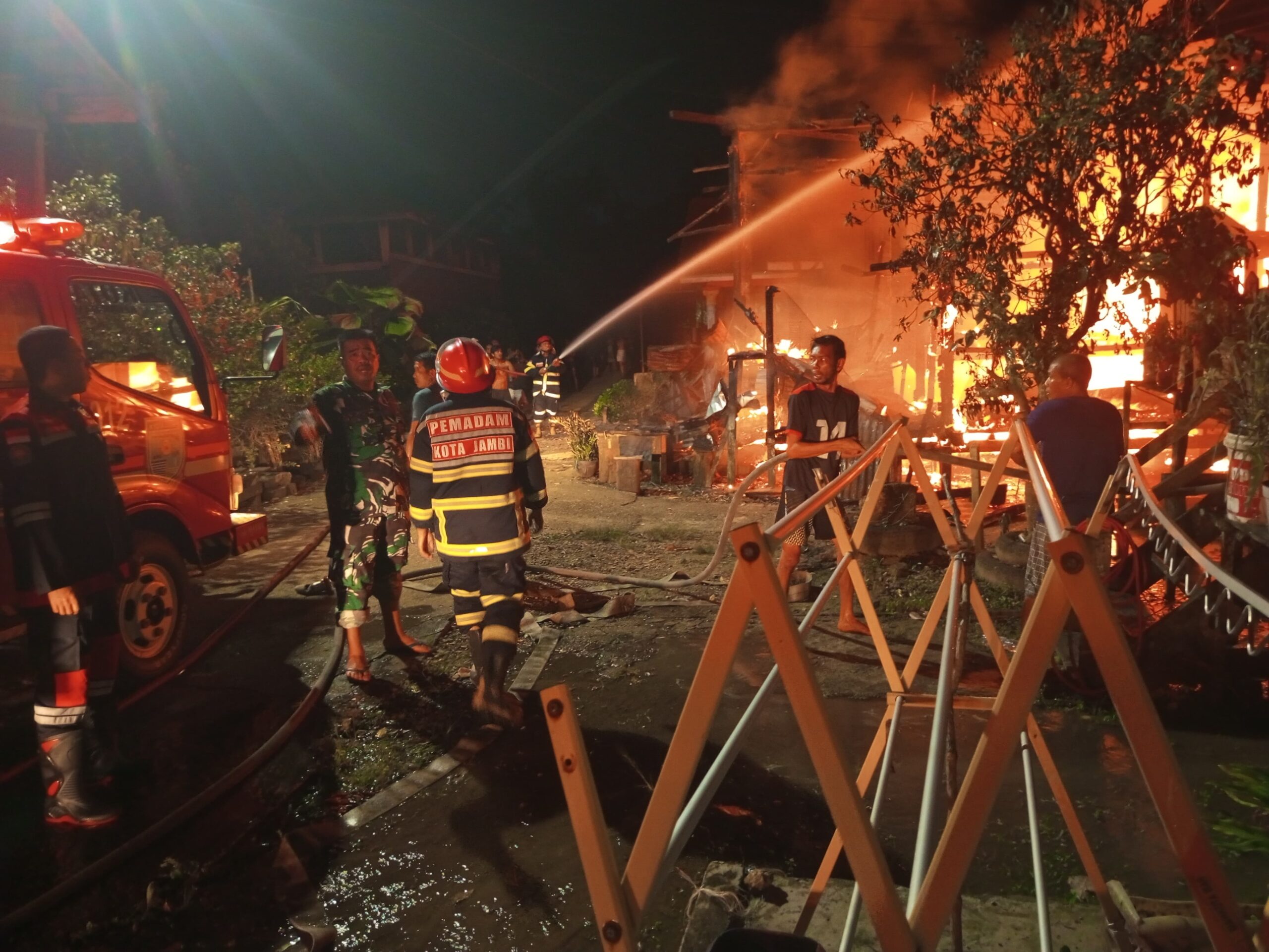JAMBI – jambiaktual.co.id Tiga rumah warga di Jalan Raden Patah, Lorong Pribadi 1, RT 02, Kelurahan Sejinjang, Kecamatan Jambi Timur, hangus dilalap api pada Kamis (20/11/2025) sekitar pukul 01.00 WIB. Peristiwa kebakaran yang terjadi dini hari itu mengejutkan warga setempat karena api dengan cepat membesar.