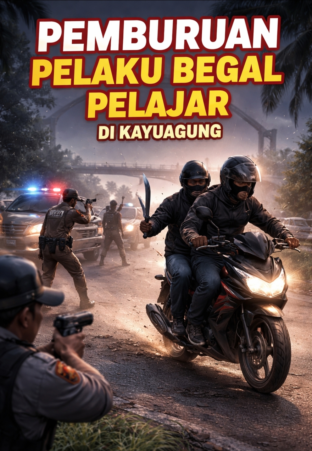 KAYUAGUNG — Kasus begal yang menimpa seorang pelajar di kawasan Jembatan Tol Kayuagung–Arisan Buntal, Kabupaten Ogan Komering Ilir (OKI), hingga kini masih dalam penanganan pihak kepolisian. Pelaku yang diduga berjumlah lebih dari satu orang dilaporkan masih buron.