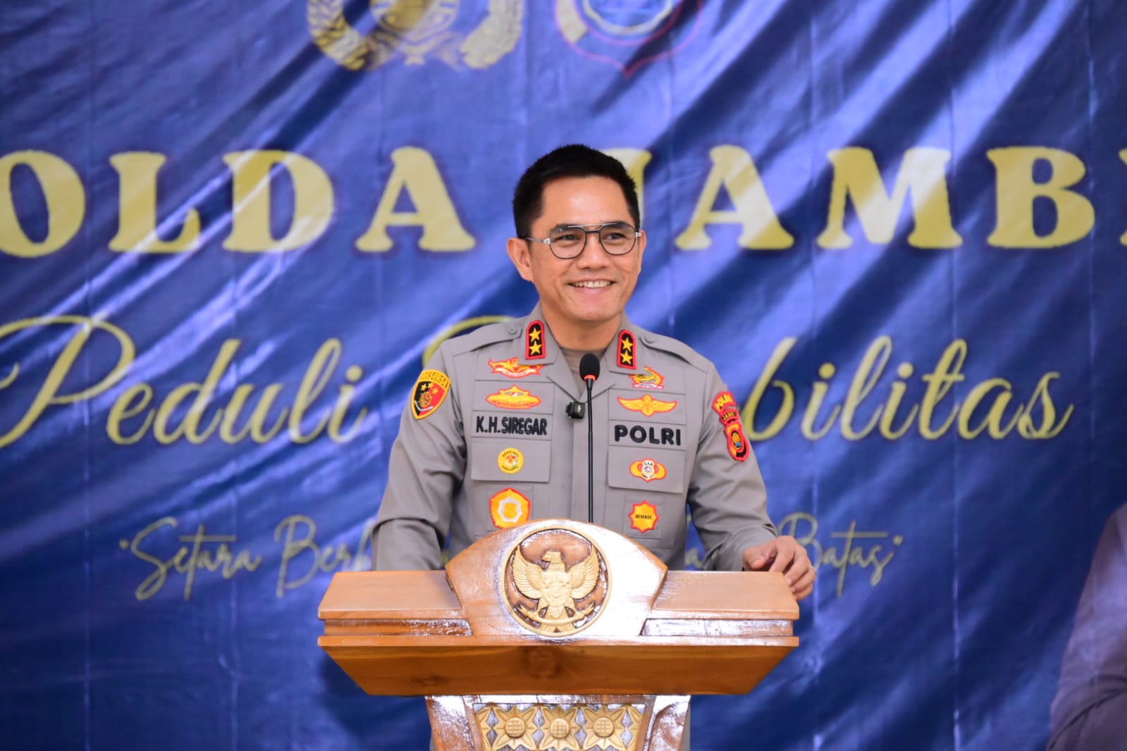 Pada kesempatan tersebut Kapolda Jambi juga memberikan sambutannya dan menegaskan komitmen Polri untuk terus hadir memberikan perlindungan dan pelayanan bagi seluruh masyarakat, termasuk penyandang disabilitas.