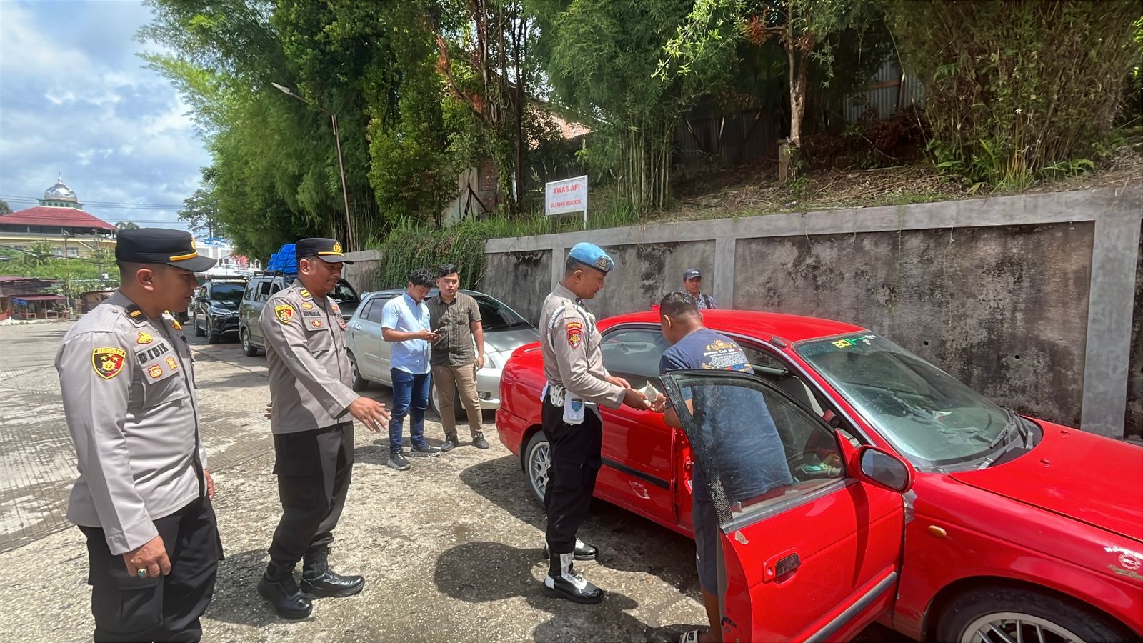Pihak kepolisian bersama petugas pemadam kebakaran dan masyarakat setempat bergerak cepat melakukan pemadaman, pengamanan tempat kejadian perkara (TKP), pemasangan garis polisi, serta pengumpulan keterangan saksi.