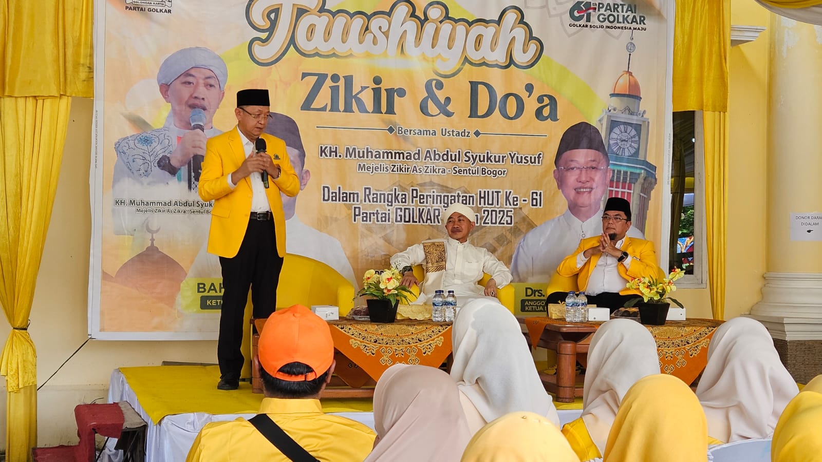 ​”Usia 61 tahun perjalanan Golkar sangat luar biasa. Angka ini melambangkan kematangan. Artinya, Golkar harus matang dalam bersikap, matang berpolitik, dan matang berkiprah atau berkarya untuk melaksanakan tugas, berkarya untuk negeri,” jelas Ustadz Syukur.