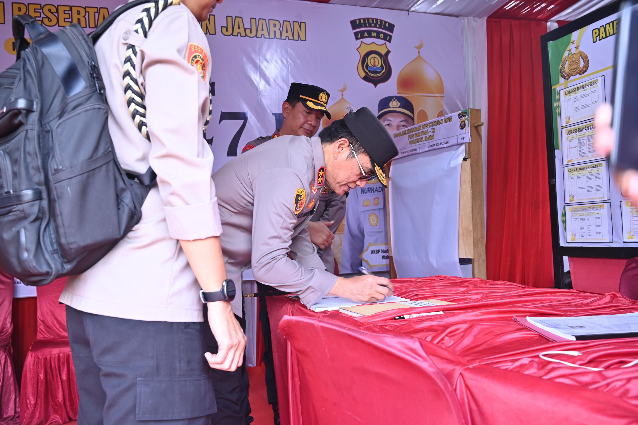 Jambi – jambiaktual.co.id Dalam rangka memastikan kesiapan pengamanan dan pelayanan kepada masyarakat menjelang Hari Raya Idul Fitri 1447 H tahun 2026, Kapolda Jambi Irjen Pol. Krisno H. Siregar turun langsung meninjau sejumlah Pos Pelayanan dan Pos Pengamanan di wilayah Kota Jambi.