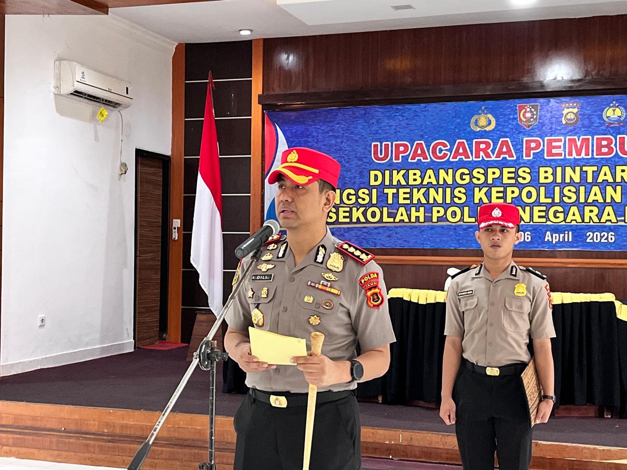 Jambi – Sekolah Polisi Negara (SPN) Polda Jambi resmi menggelar Upacara Pembukaan Pendidikan Pengembangan Spesialisasi (Dikbangspes) Bintara Dasar Fungsi Teknis (FT) Kepolisian Gelombang II Tahun Anggaran 2026. Kegiatan tersebut berlangsung pada Senin (6/4/2026)