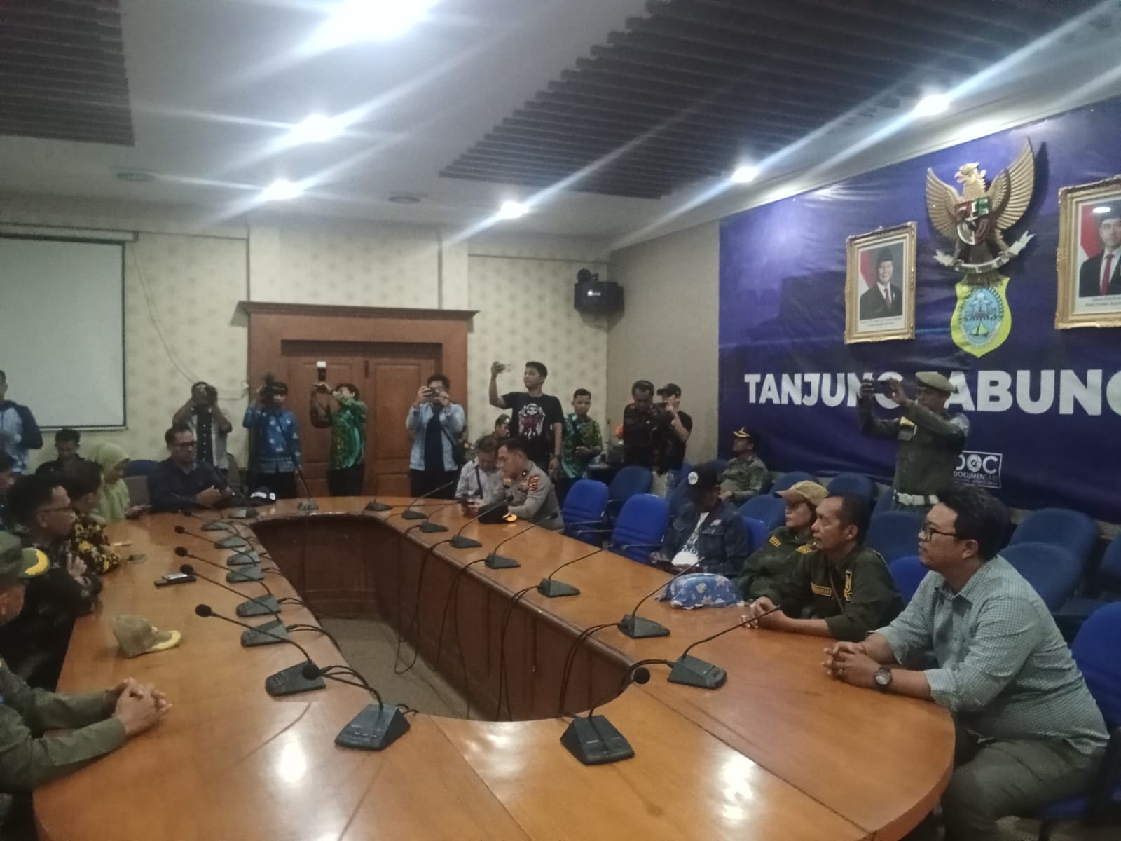 Rombongan aksi unjuk rasa AWaSI Jambi di sambut oleh Asisten I Setda Kabupaten Tanjung Jabung Timur, Staf Ahli, Kepala Dinas Kelautan dan Perikanan, Kepala Dinas Kominfo, Kepala Badan Keuangan Daerah, Kepal Sat Pol PP, serta Camat Muara Sabak Barat.